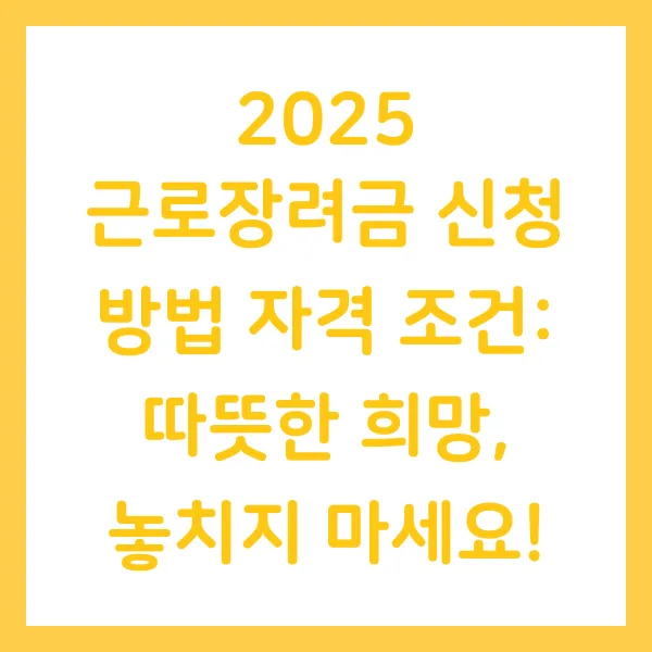 2025 근로장려금 신청 방법 자격 조건: 따뜻한 희망, 놓치지 마세요!